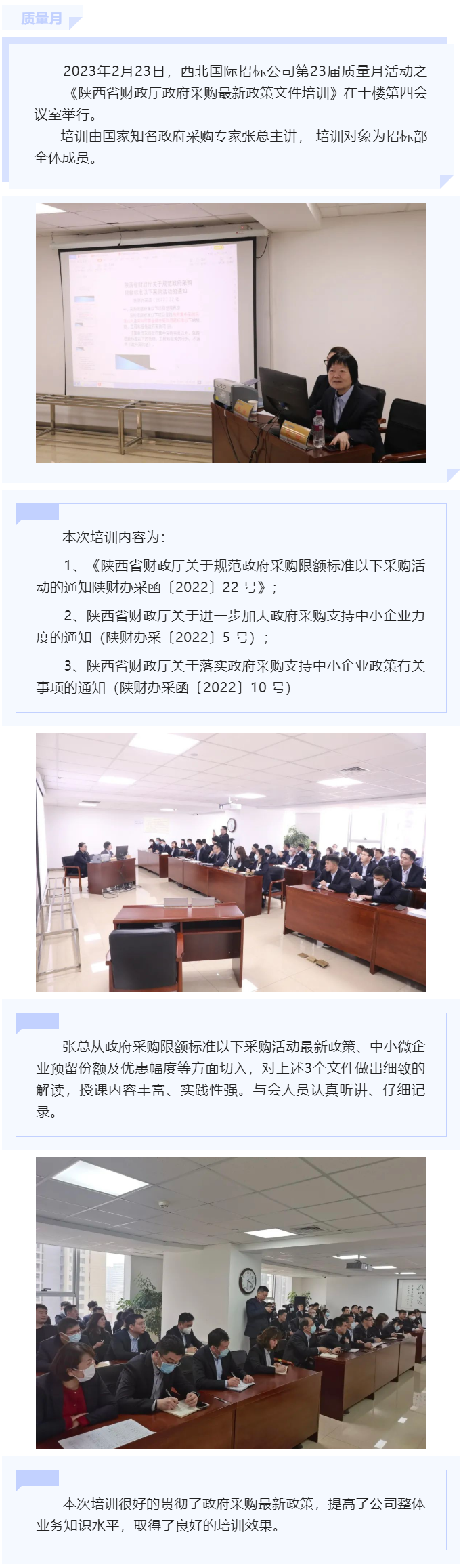 西北國際招標(biāo)公司第23屆質(zhì)量月活動之——《陜西省財政廳政府采購最新政策文件培訓(xùn)》