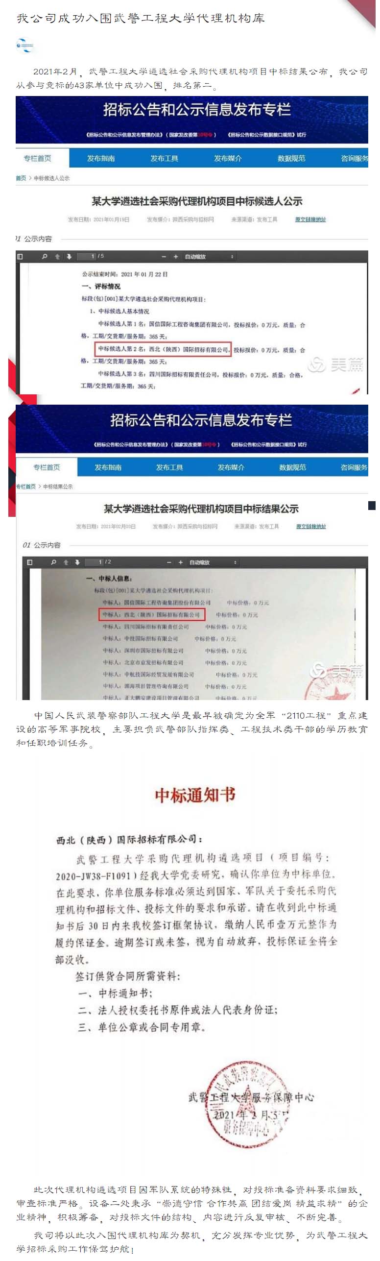 我公司成功入圍武警工程大學(xué)代理機(jī)構(gòu)庫
