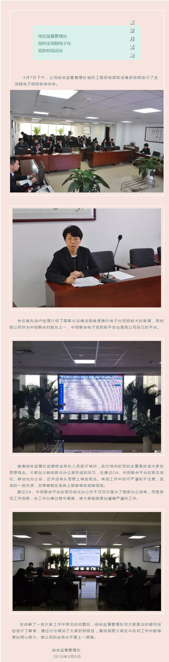 質(zhì)量月活動-綜合監(jiān)督管理處組織全流程電子話招投標培訓(xùn)會