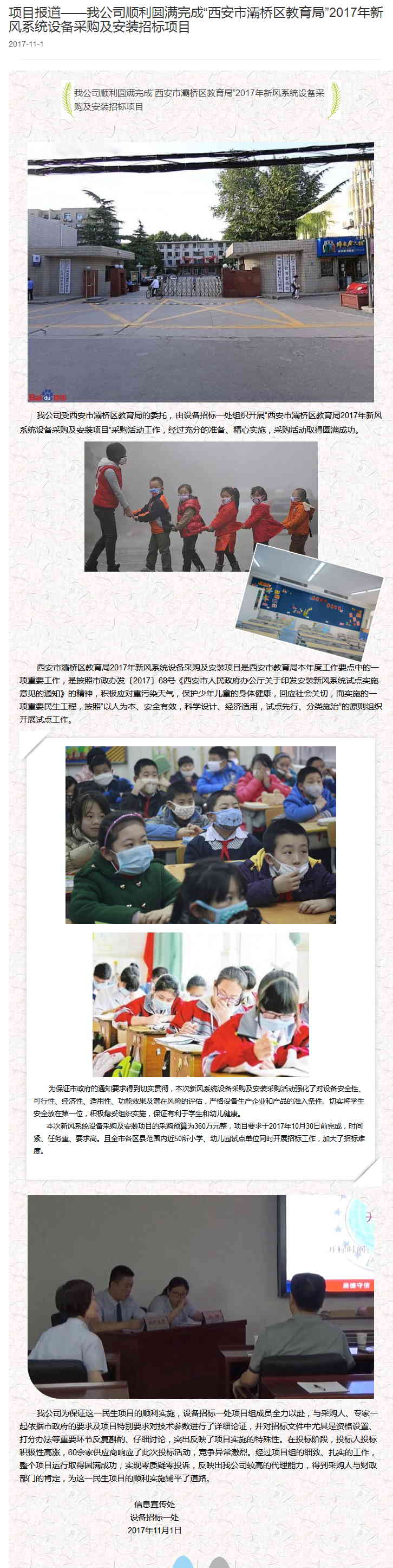 我公司順利圓滿完成“西安市灞橋區(qū)教育局”2017年新風系統(tǒng)設備采購及安裝招標項目