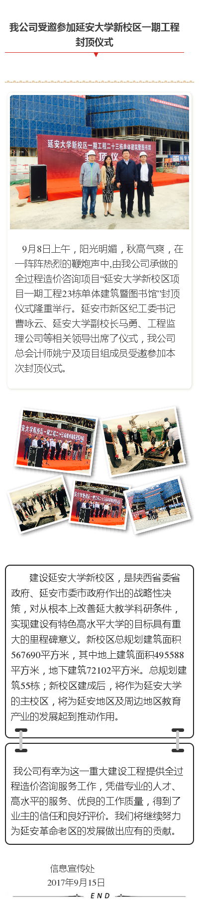 我公司受邀參加延安大學新校區(qū)一期工程封頂儀式