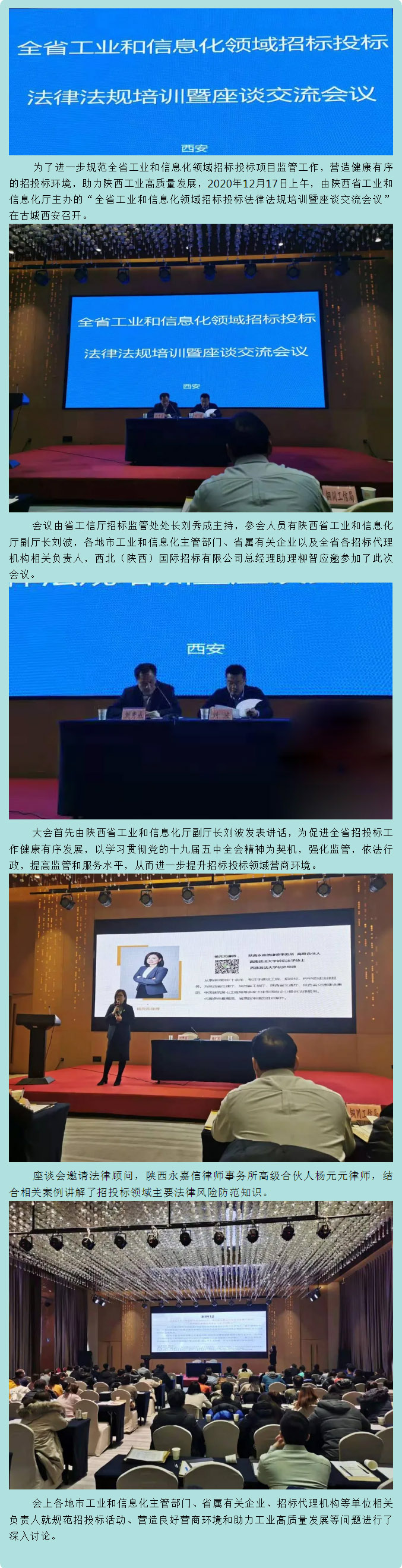 我公司總經(jīng)理助理柳智受邀參加陜西省工業(yè)和信息化領(lǐng)域招標(biāo)投標(biāo)法律法規(guī)培訓(xùn)暨座談交流會議