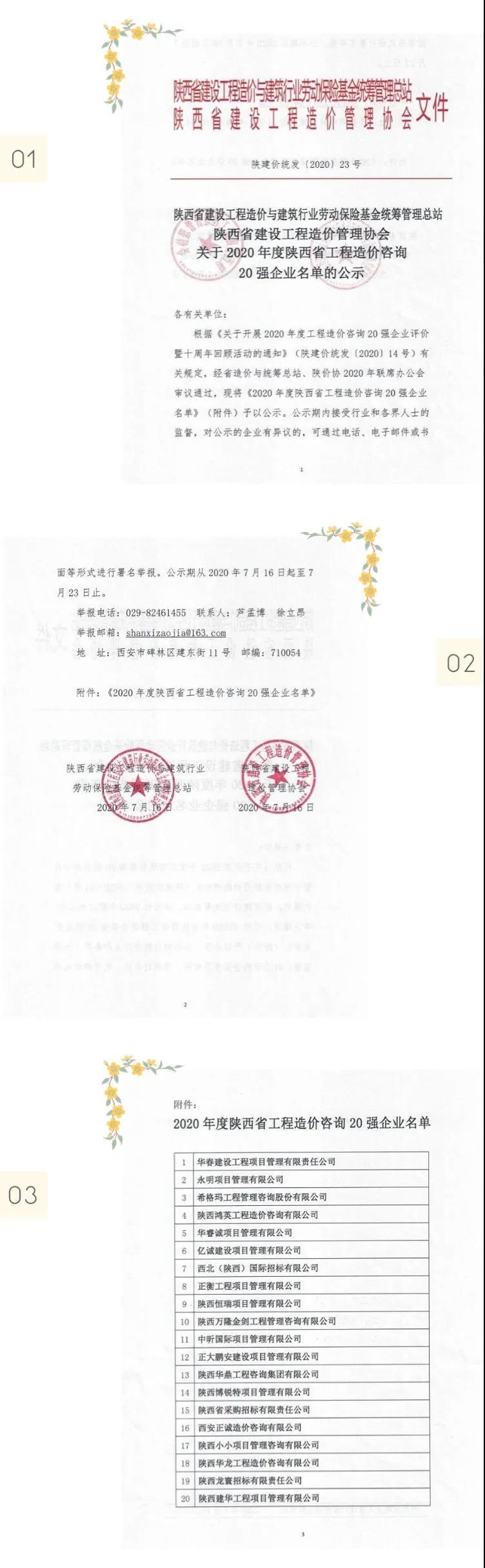 2020年7月17日,陜西省建設(shè)工程造價(jià)管理協(xié)會(簡稱陜價(jià)協(xié))發(fā)布“關(guān)于2020年度陜西省工程造價(jià)咨詢20強(qiáng)企業(yè)名單的公示”,西北(陜西)國際招標(biāo)有限公司再次入圍,榮獲“第七名”。