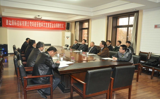 張金鎖校長介紹了延安大學(xué)相關(guān)歷史及現(xiàn)狀,并對(duì)西北國際招標(biāo)公司對(duì)延安科教文發(fā)展給予的支持表示衷心的感謝。戈總表示,為促進(jìn)延安教科文發(fā)展基金會(huì)各項(xiàng)事業(yè)的順利實(shí)施,以及從戰(zhàn)略高度和長遠(yuǎn)發(fā)展需要出發(fā),我們希望通過這次合作建立多層次、高水平的校企合作關(guān)系,達(dá)到優(yōu)勢(shì)互補(bǔ)、共同發(fā)展的目的!