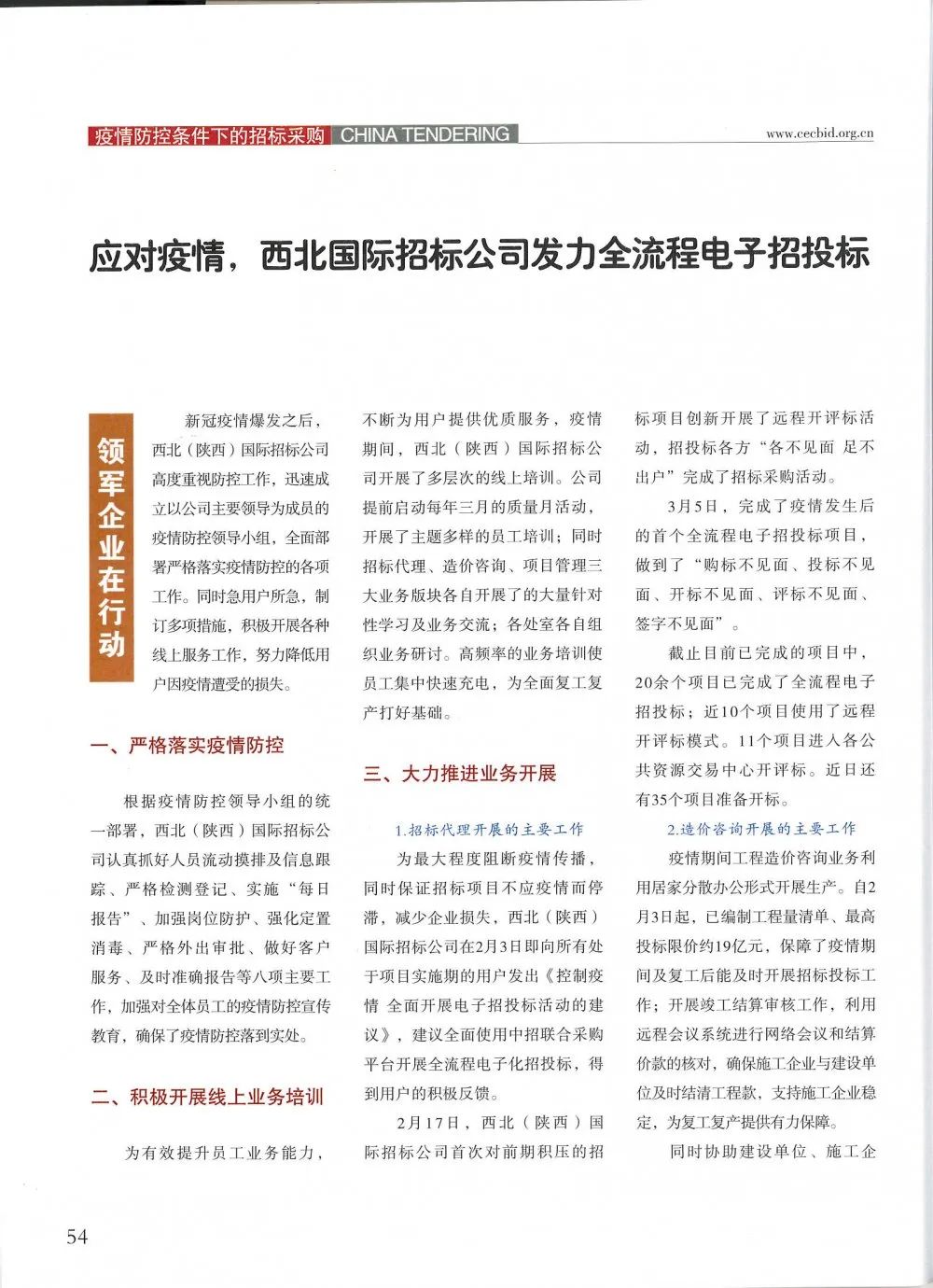 《中國招標(biāo)》周刊2020第5期——應(yīng)對疫情,西北國際招標(biāo)公司發(fā)力全流程電子招投標(biāo)