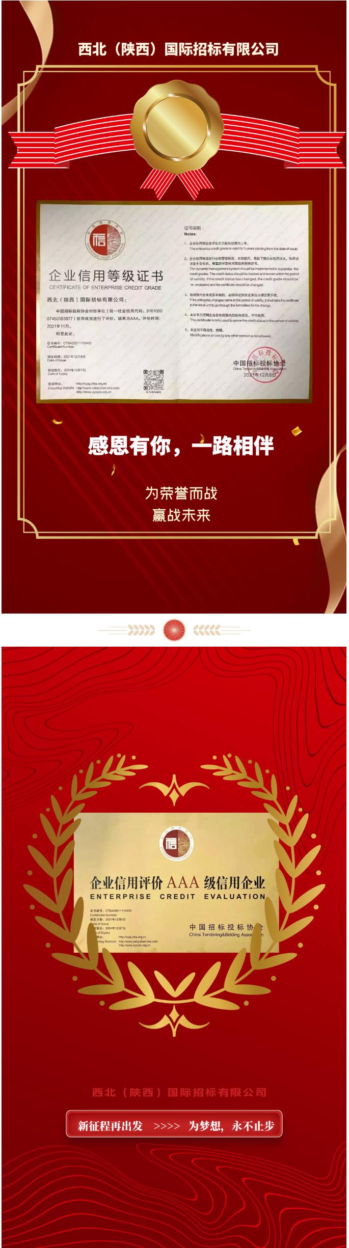 我公司榮獲【中國招投標(biāo)協(xié)會(huì)】頒發(fā)的《企業(yè)信用評(píng)價(jià)AAA證書》