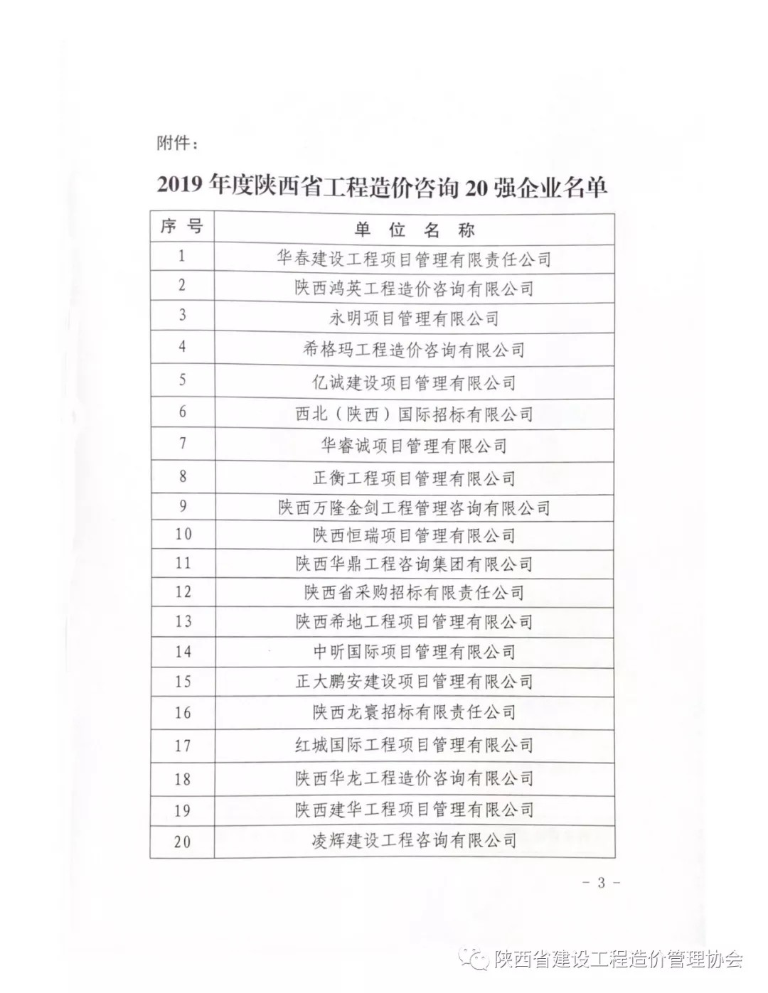 2019年8月26日,陜西省建設(shè)工程造價管理協(xié)會(簡稱陜價協(xié))發(fā)布“關(guān)于2019年度陜西省工程造價咨詢20強(qiáng)企業(yè)名單”公示,西北(陜西)國際招標(biāo)有限公司再次入圍,榮獲“第六名”。