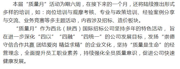 西北國際招標(biāo)公司第二十三屆“”質(zhì)量月”培訓(xùn)活動報道(第二周)