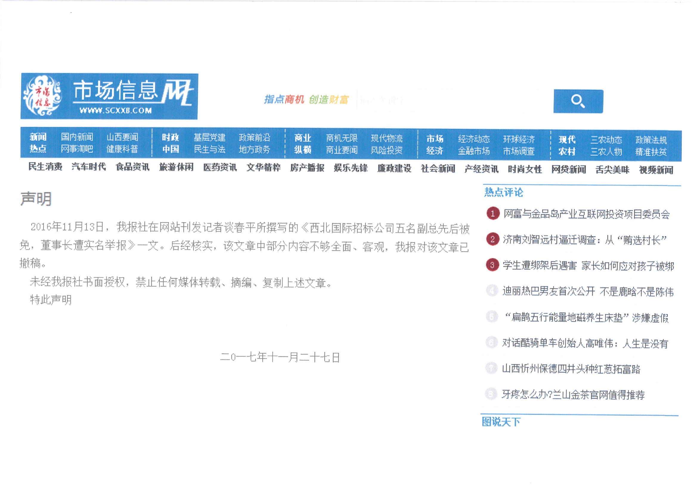 關(guān)于《市場(chǎng)信息報(bào)》不實(shí)報(bào)道裁決結(jié)果的特別告知