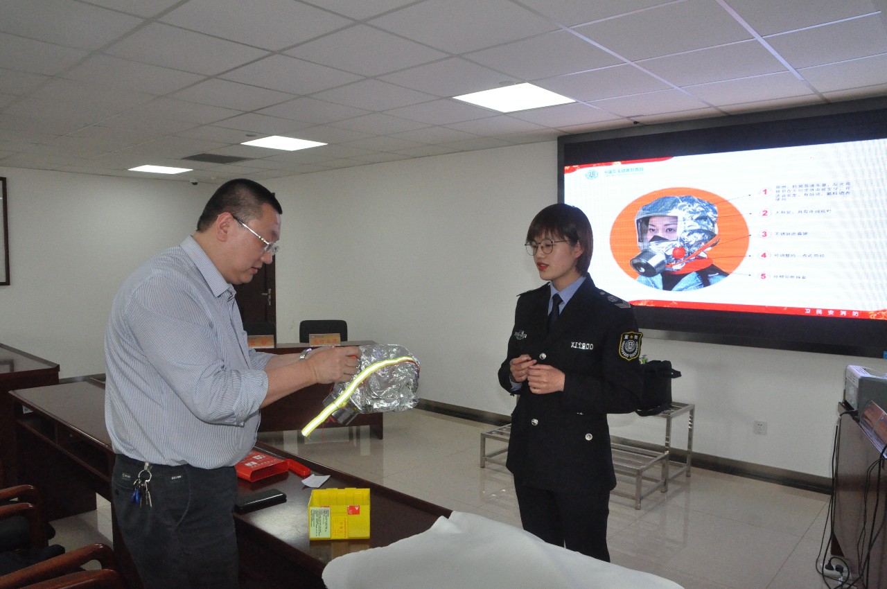 教官以新聞報道、現(xiàn)場說法的方式,播放講解了近年發(fā)生的多起重大火災事故的實例視頻,用觸目驚心的畫面使全體參訓人員深刻認識到了“防范勝于救災”的重要性。在火災來臨時,如何臨危不亂,正確自救。教官又和現(xiàn)場培訓人員互動,如何正確使用防火毯、防毒面罩、滅火器以及強光手電,詳細講解了在發(fā)生火災后的自防、自救、逃生技能。