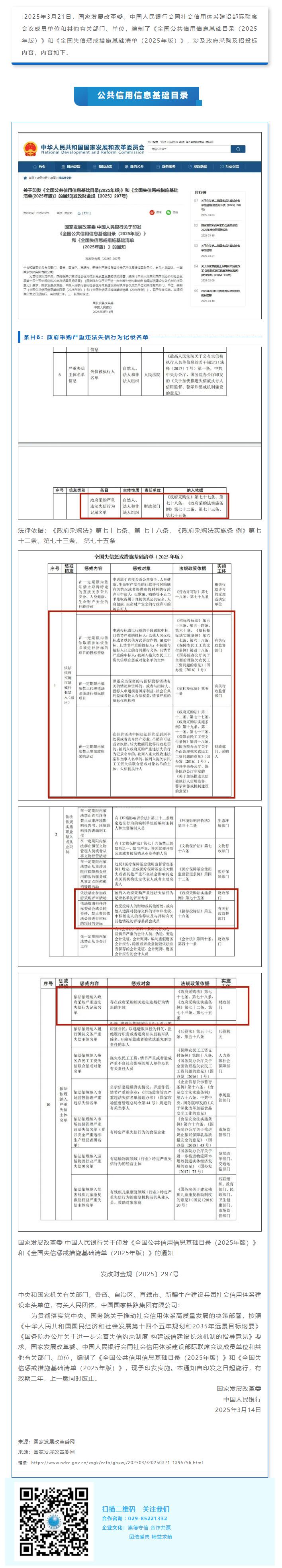 《全國公共信用信息基礎目錄(2025年版)》和《全國失信懲戒措施基礎清單(2025年版)》發(fā)布!涉及政府采購!