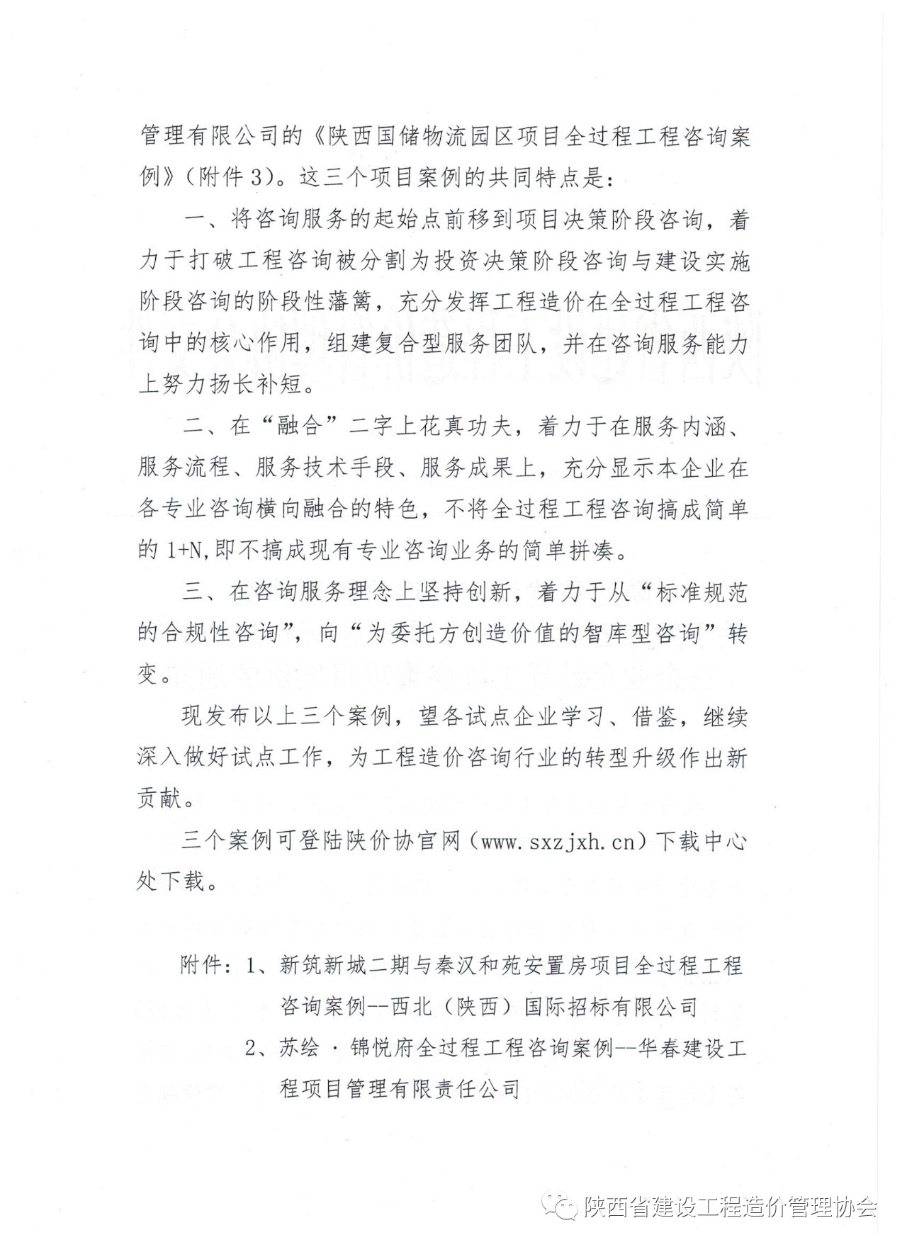 陜價(jià)協(xié)關(guān)于發(fā)布西北(陜西)國(guó)際招標(biāo)有限公司等三企業(yè)全過(guò)程工程咨詢(xún)項(xiàng)目案例的通知